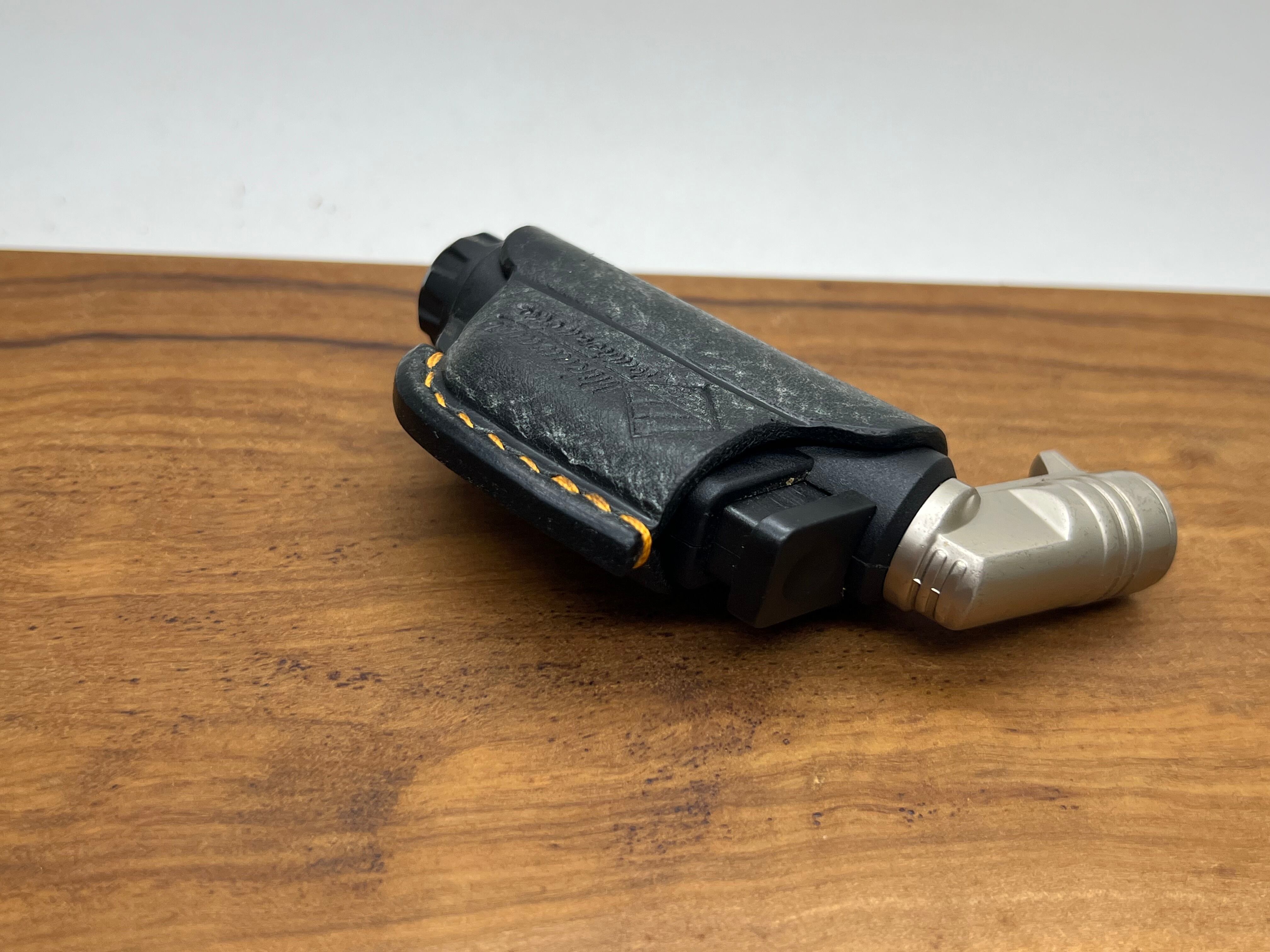 超小型強力耐風バーナーのマイクロトーチアクティブの革カバー。アウトドアの携帯ツールもカバーひとつで差をつけよう。
