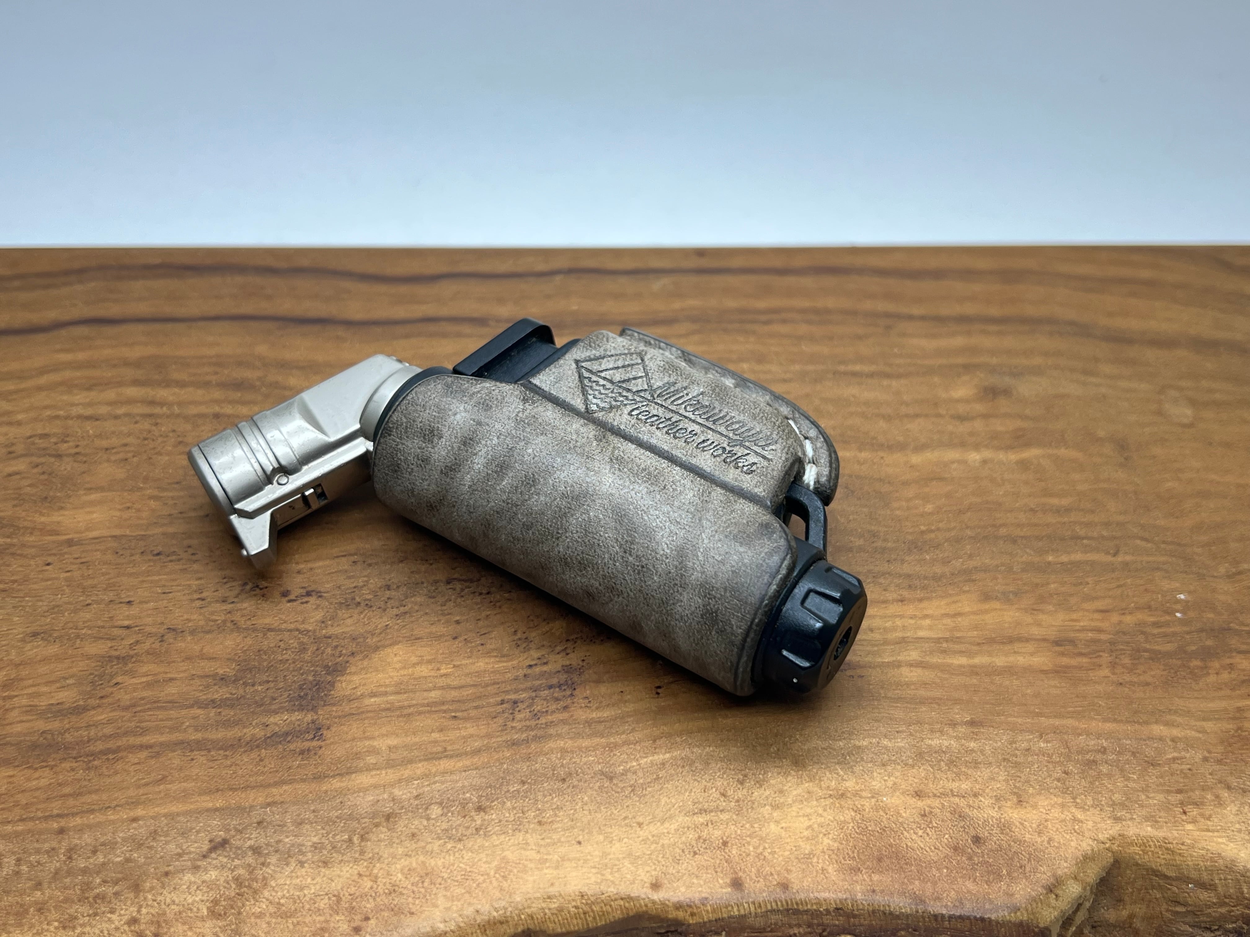 超小型強力耐風バーナーのマイクロトーチアクティブの革カバー。アウトドアの携帯ツールもカバーひとつで差をつけよう。