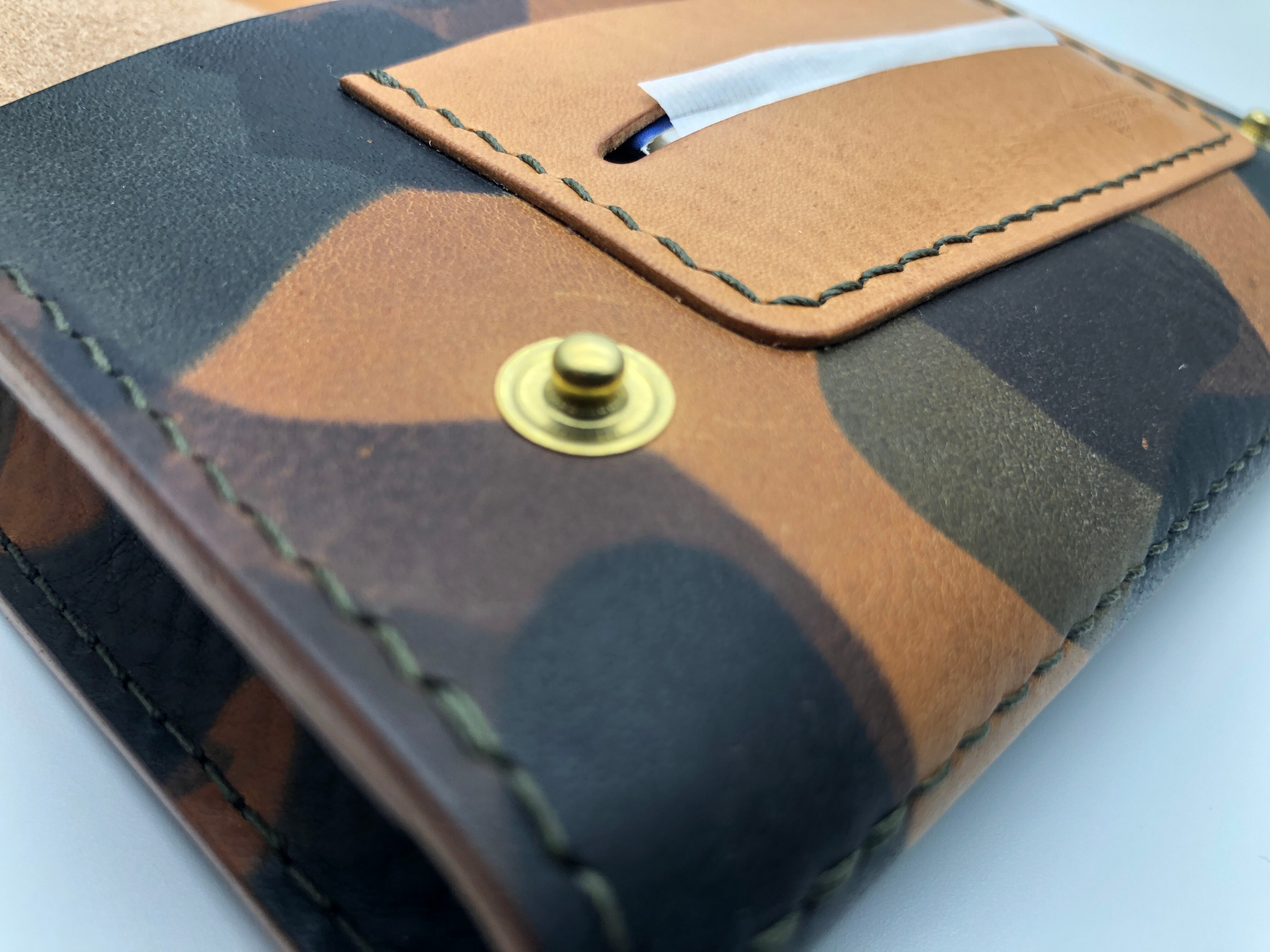 ハンドメイドで革をカットしておりますので迷彩柄の配置は画像と異なります。