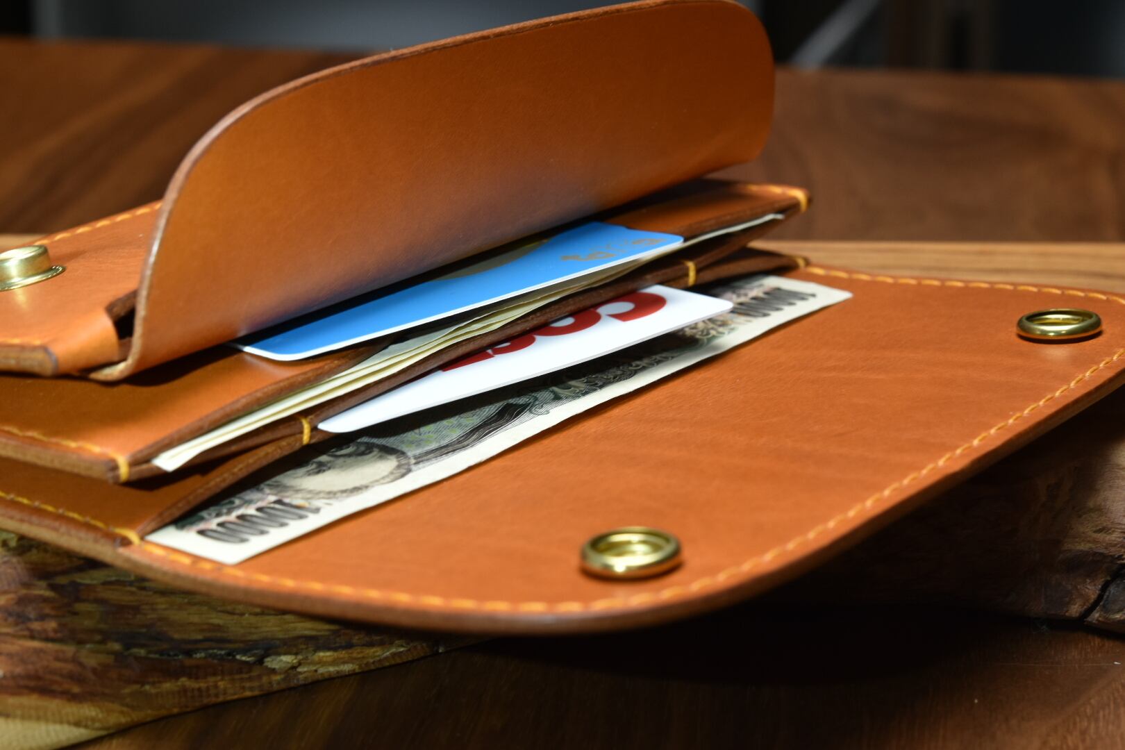 比較的硬めの革ですが、しっかりオイルが効いているので「コシはあるけど、程よくしなやか」という印象を持ってもらえると思います