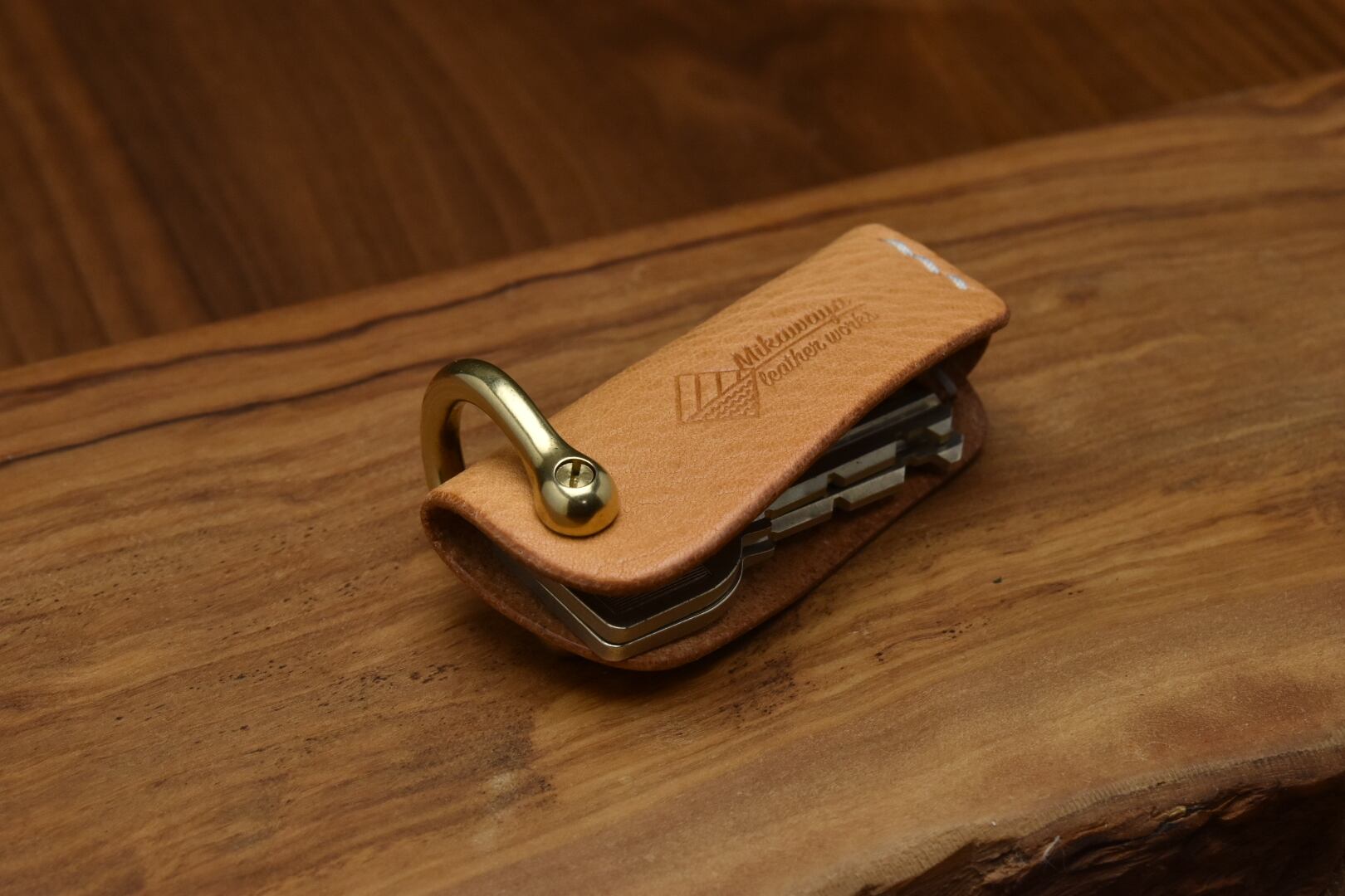 mikawayaleatherworksの仕立てたミニマムキーケースは収納力は良くありません。鍵の収納数は3本です。