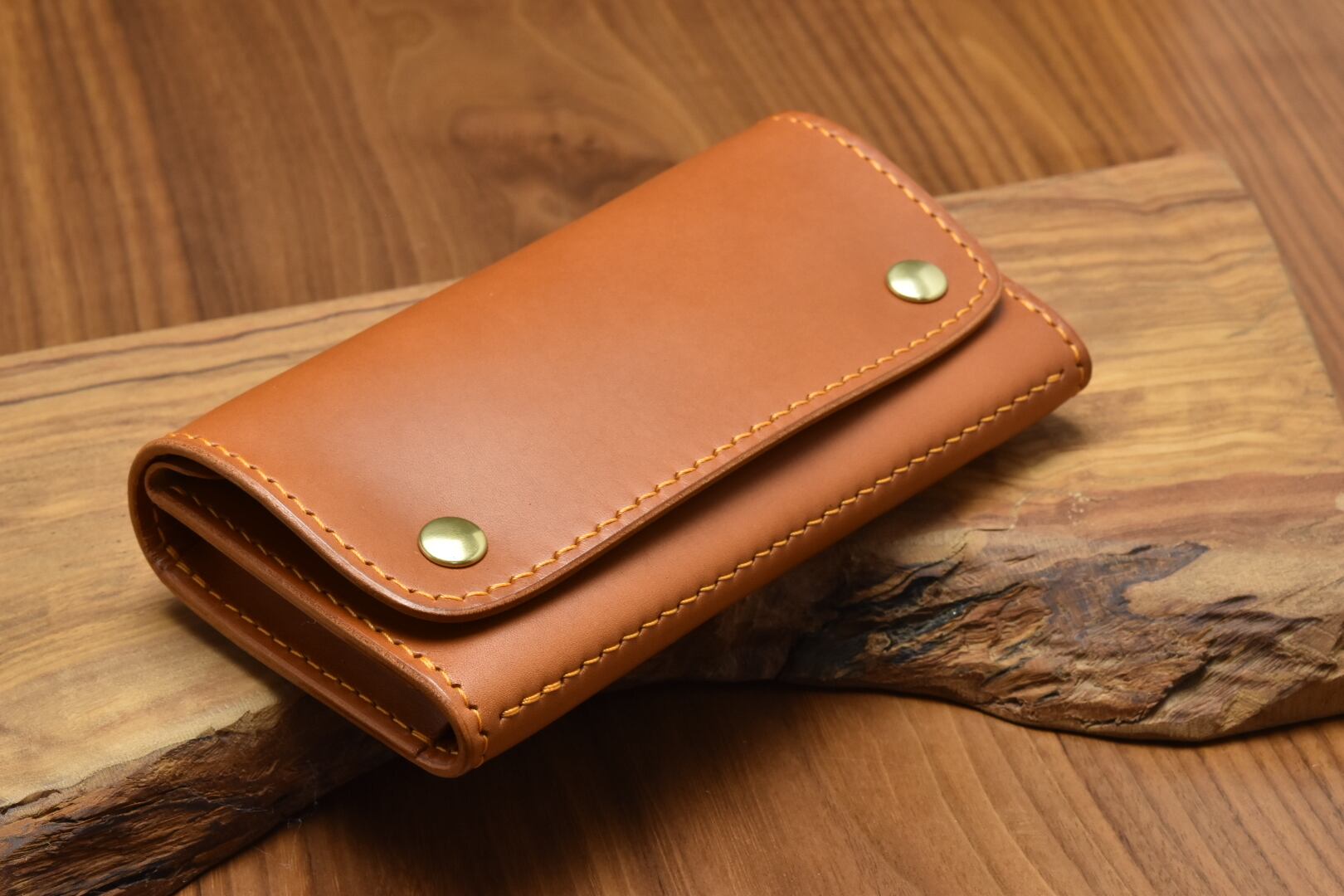 コニャックのレザーにお好みのカラーステッチで貴方だけのシャグポーチを