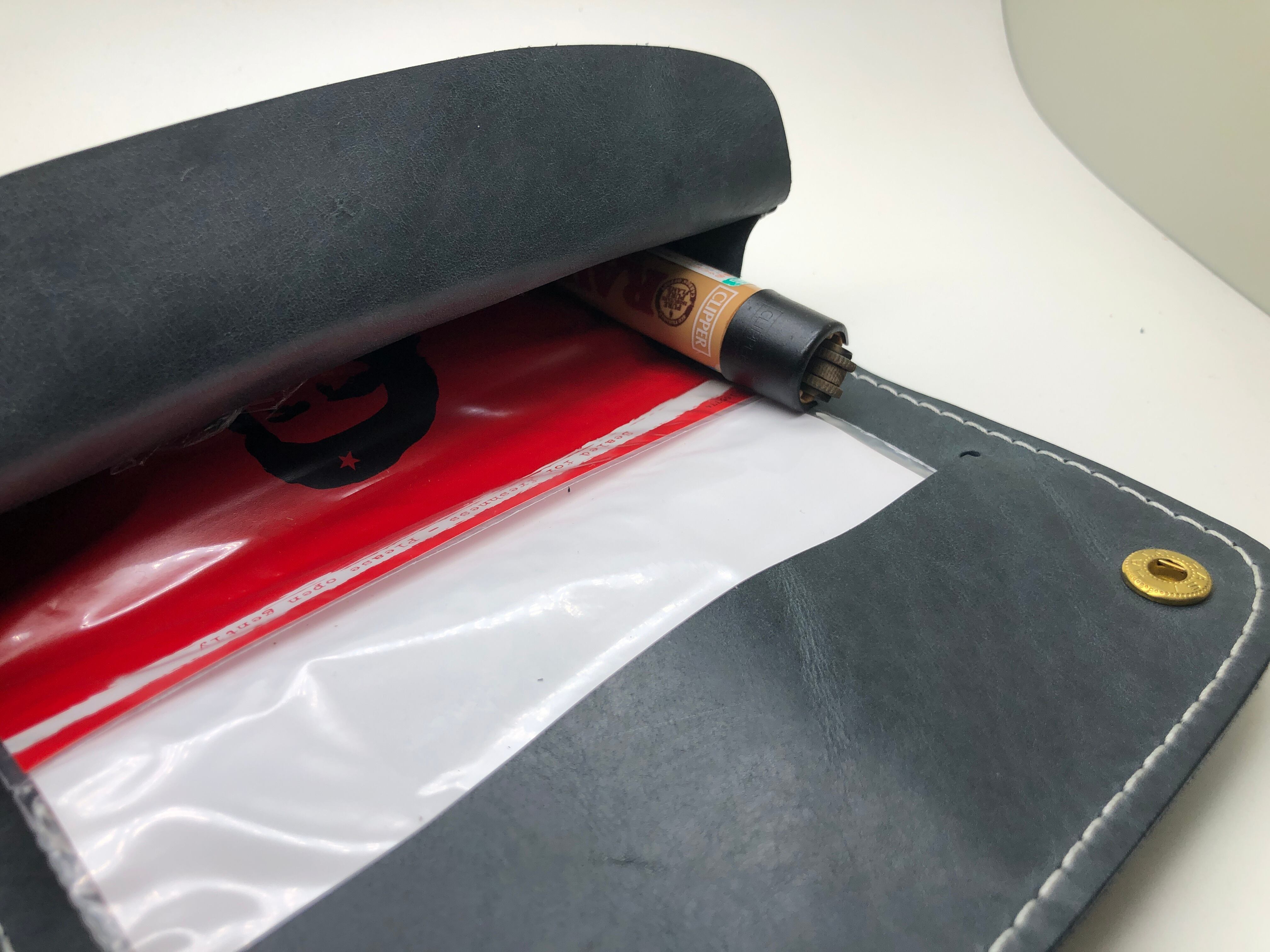 画像にはチェ25gのパウチ新品とライターが収納してあります(アメスピ、ぺぺ等の155ミリサイズのパウチも収納可能です